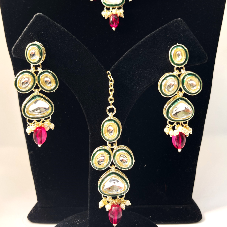 • Set Includes: Necklace, Earrings, and Maang Tikka
