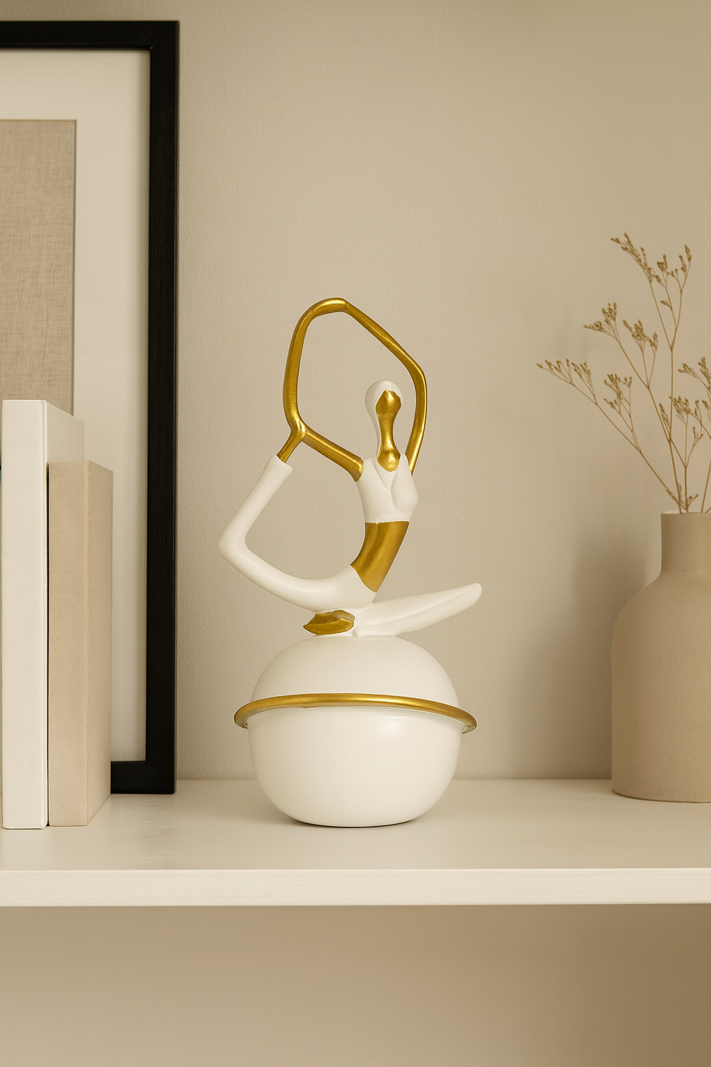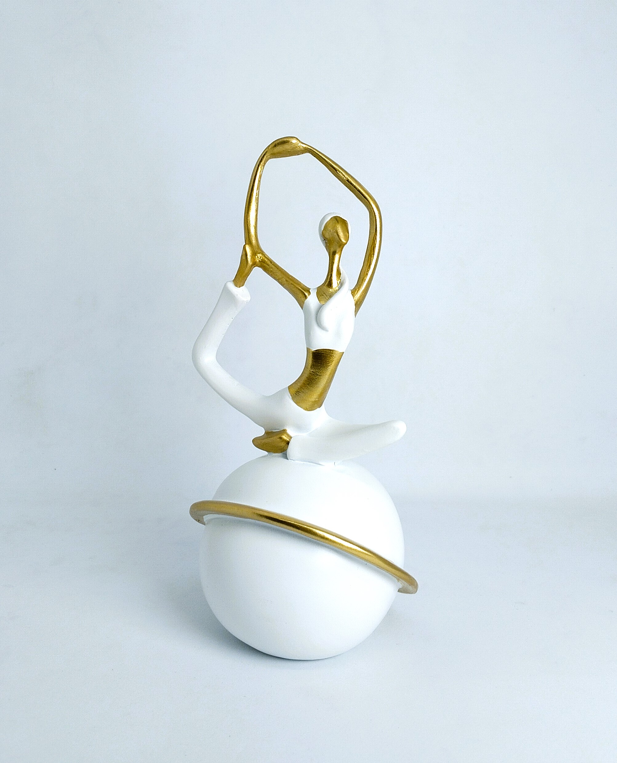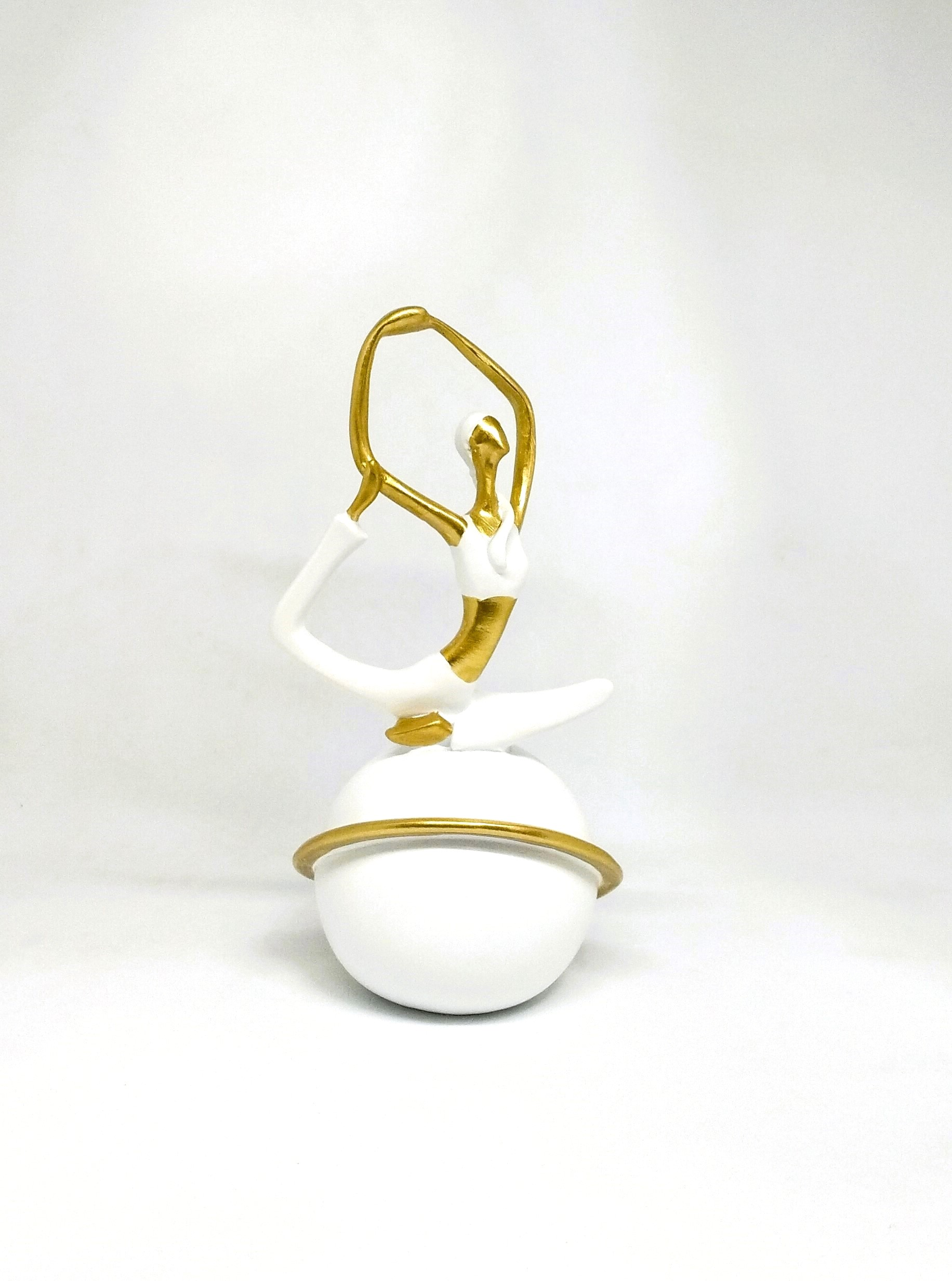 Graceful Yoga Pose Decorative Figurine – Gold & White Modern Resin Sculpture (9 cm × 16.5 cm) | Toombox Home Décor Collection