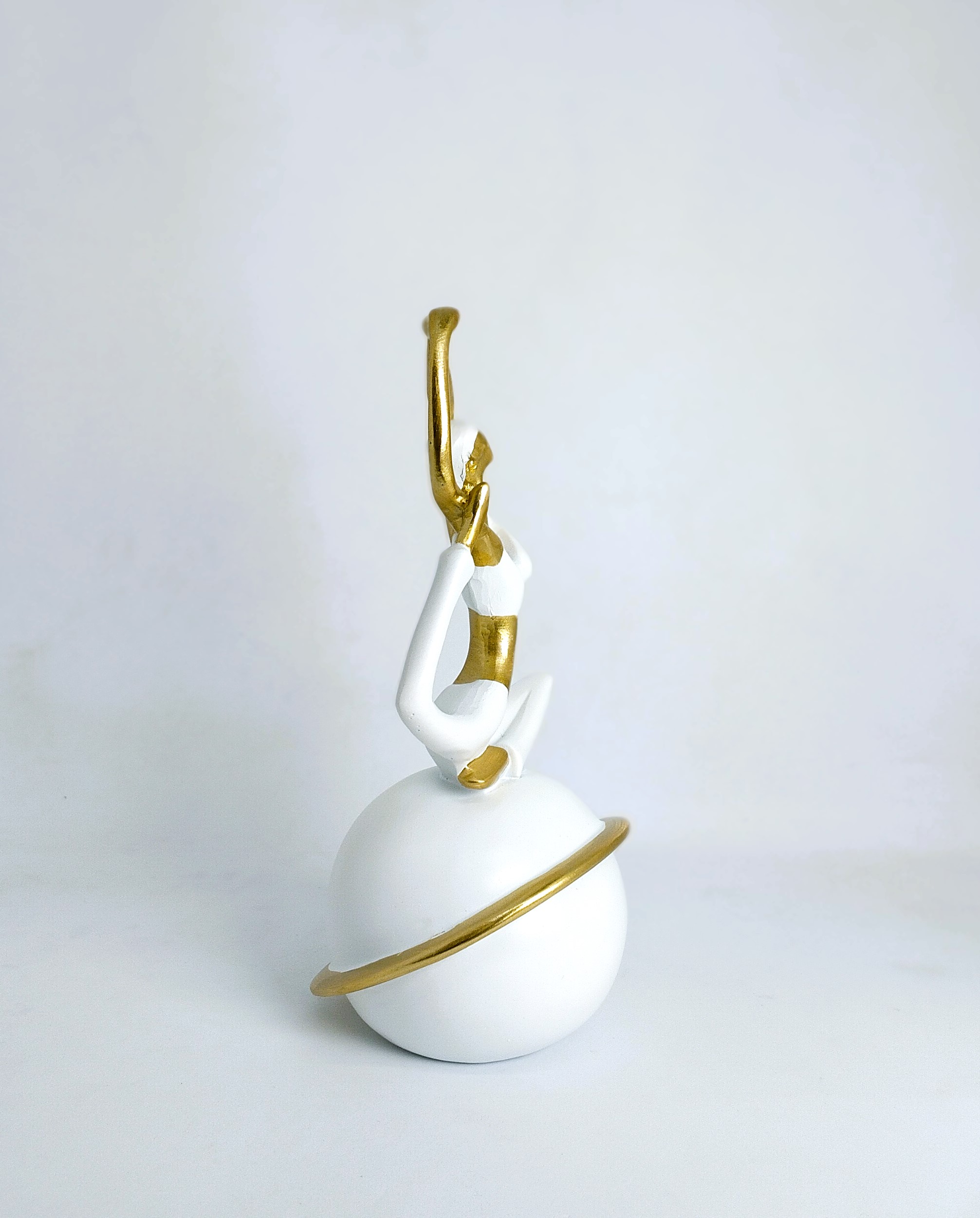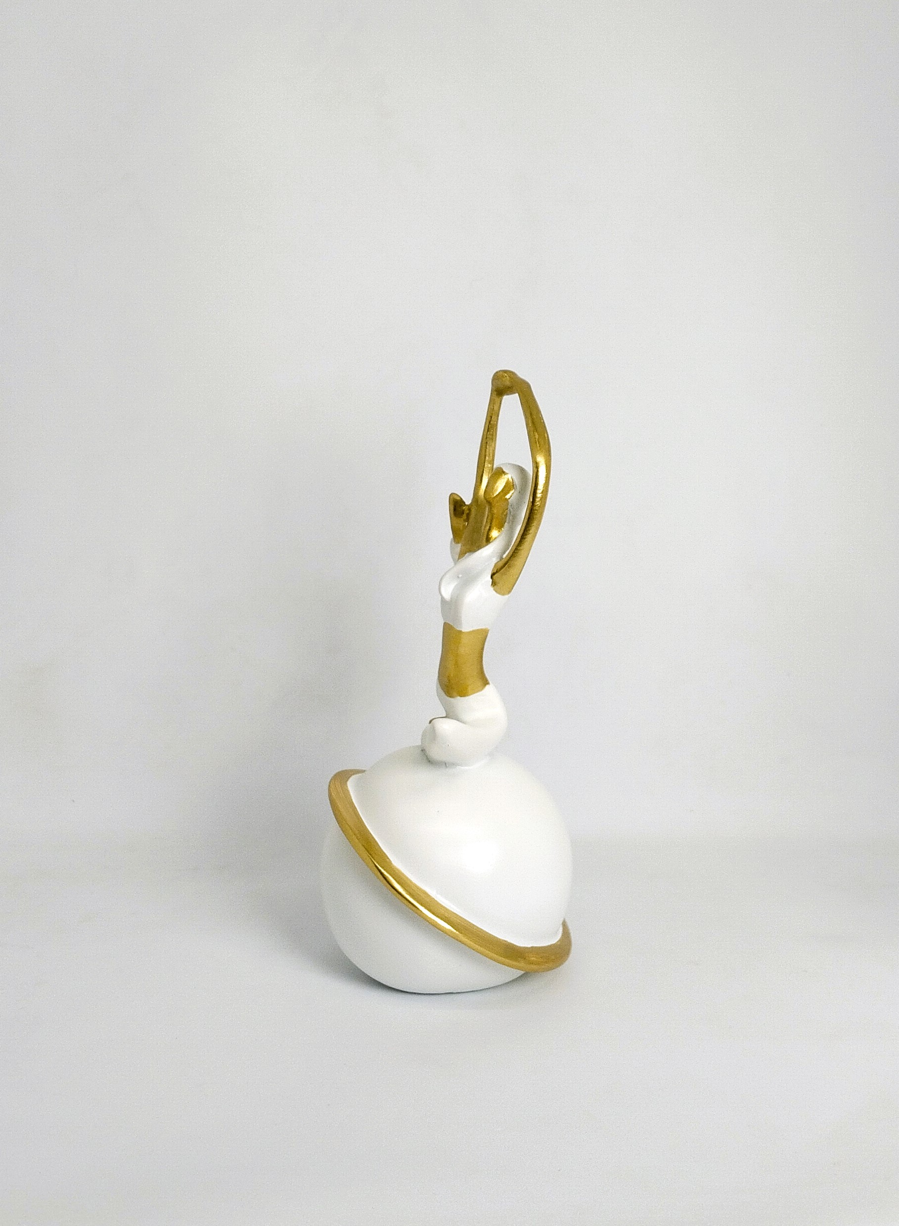 Bring a sense of calm and balance to your space with this elegant gold and white yoga figurine from Toombox.