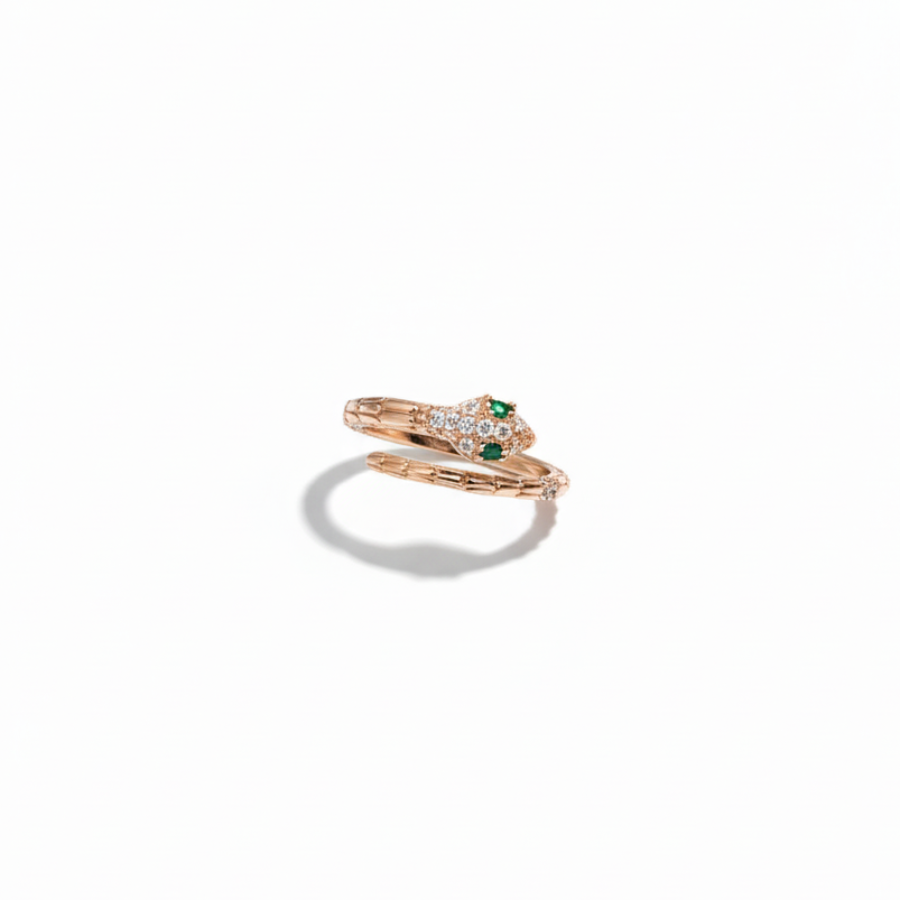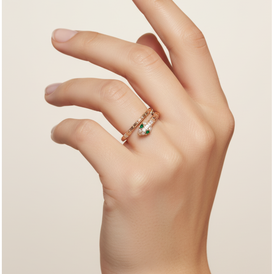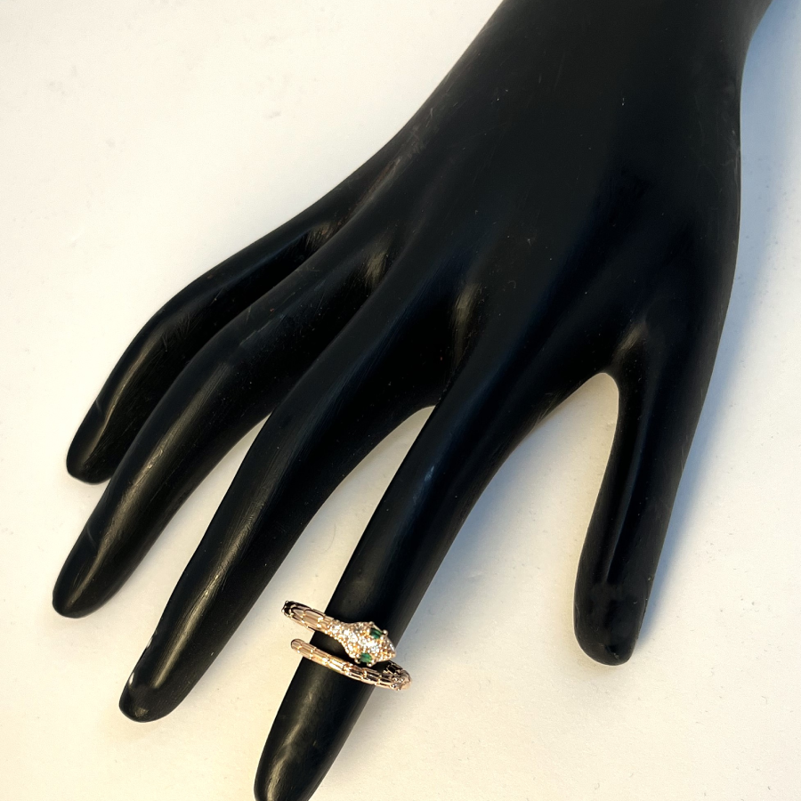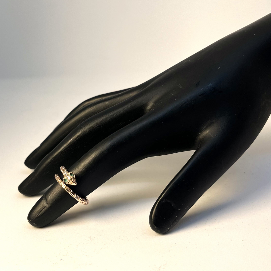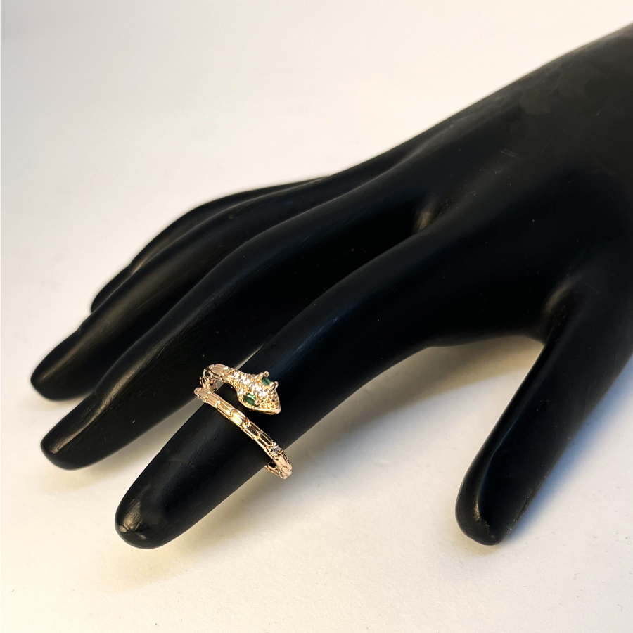 Gold Plated Snake Ring, featuring an intricately crafted serpent design that coils elegantly around your finger. Studded with sparkling cubic zirconia stones and finished with a gleaming gold polish, this ring symbolizes power, protection, and transformation.