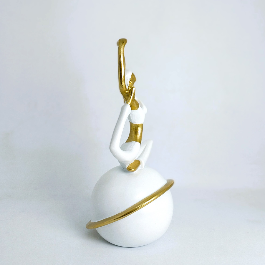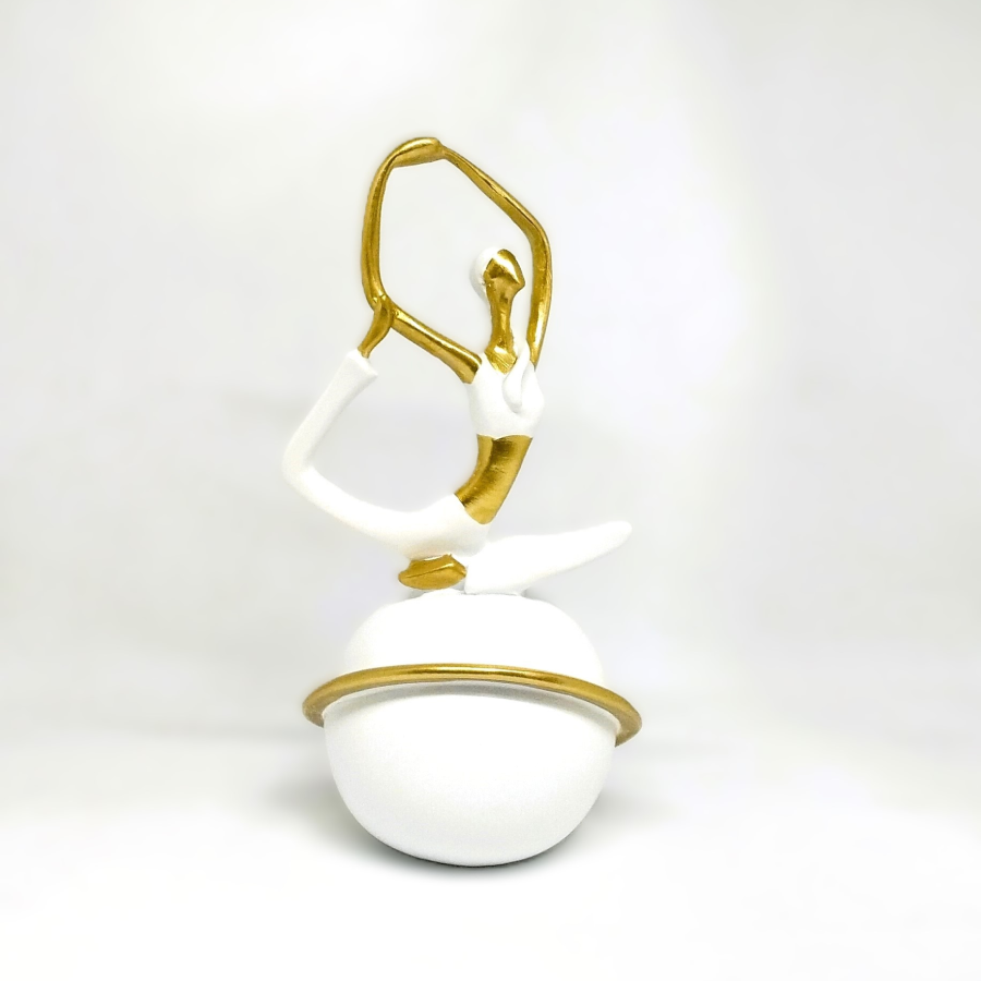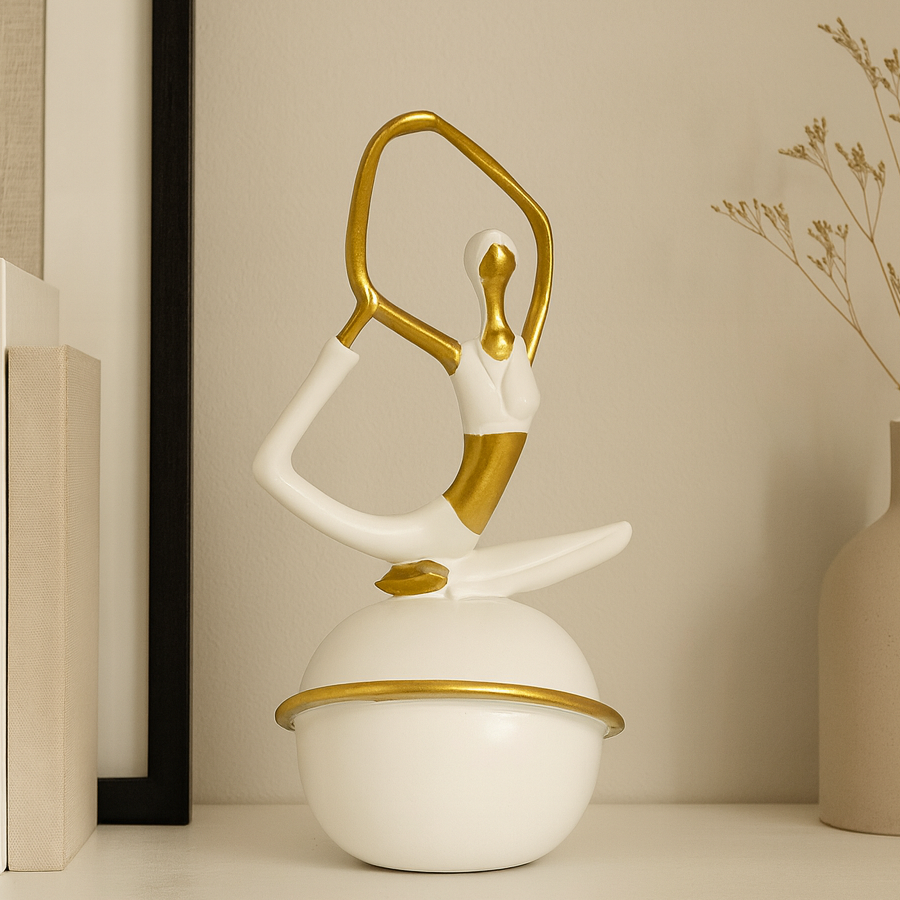 Graceful Yoga Pose Decorative Figurine – Gold & White Modern Resin Sculpture (9 cm × 16.5 cm) | Toombox Home Décor Collection
