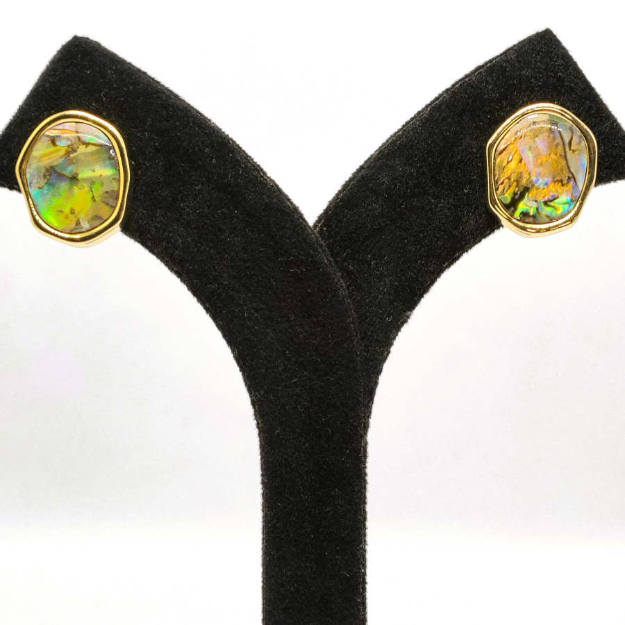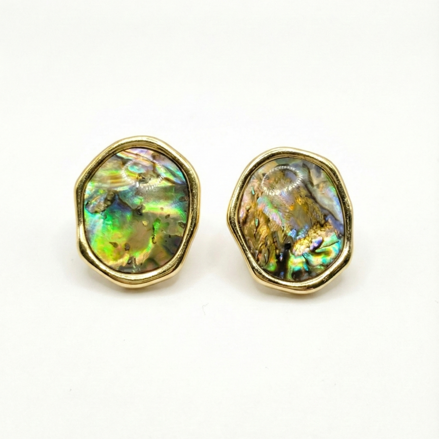 Iridescent Abalone Shell Stud Earrings with Gold-Tone Frame – Premium Statement Accessory