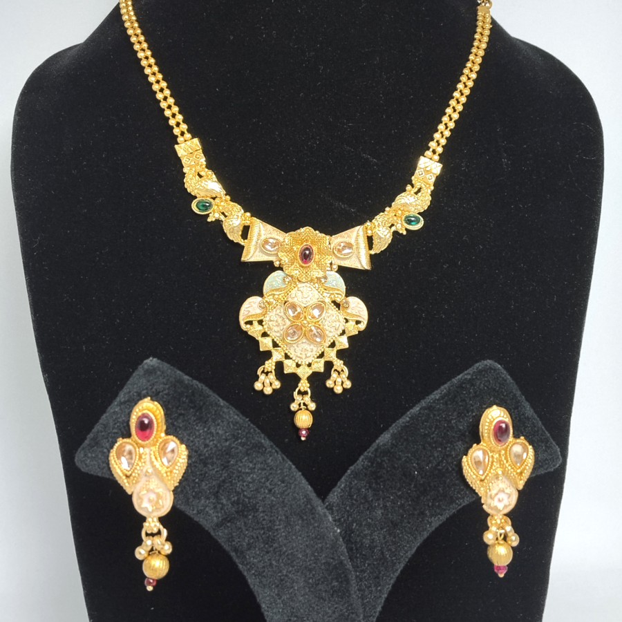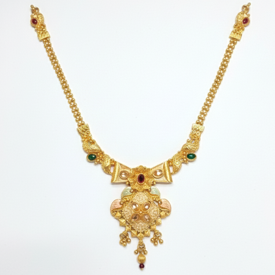 Crafted with a durable gold plated finish, it is ideal for Indian weddings, bridal wear, festive occasions, and cultural celebrations. The exquisite detailing and traditional craftsmanship make this set a must-have statement piece that pairs beautifully with sarees, lehengas, and ethnic attire.